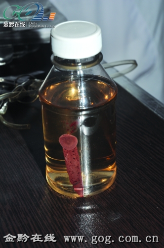 經確認,這是一條前尖后鈍的螞蟥,后吸盤上還有5個猩紅的吸血點。背部呈黑棕色,整個身長達5公分、寬0.5公分。離開鼻腔后,這條螞蟥顯得非常不高興,翻滾跳騰,醫生將螞蟥裝入一個密封塑料瓶,用酒精浸泡封存。