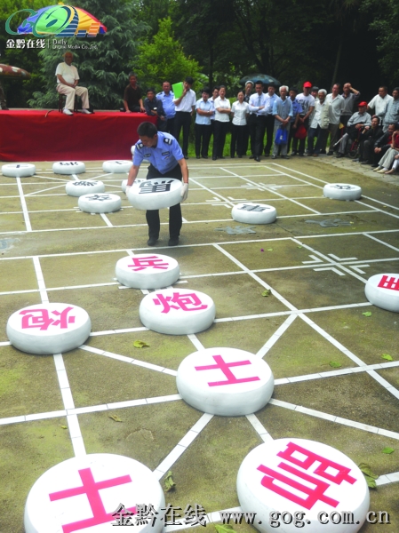 金黔在線訊 6月17日下午1點(diǎn),海天園巨大的自然大棋盤上正在進(jìn)行一場扣人心弦的表演賽,兩位老人手持長竹竿,坐在高高的石階上,指揮兩位員工按照自己的走棋意圖搬動(dòng)著巨大的象棋子。經(jīng)過三天的比賽,海天園第九屆老年象棋賽進(jìn)入收官階段,按年齡分組的三組參賽選手將最后決出冠亞軍。