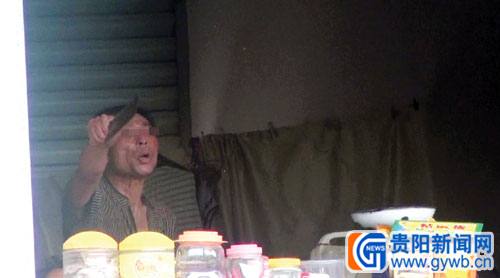 追至玉屏縣平溪鎮江發公司門面處時,男子攔下迎面駛來的一輛摩托車欲騎車逃離,但摩托車未發動成功。此后,男子沖進江發公司一家門面內,將菜刀架在腿部殘疾的商店老板的脖子上,并咆哮道:“誰過來,我就殺死他!”