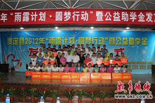 8月30日,貴定縣舉行2012年“雨露計(jì)劃•圓夢(mèng)行動(dòng)”暨公益助學(xué)金發(fā)放儀式。