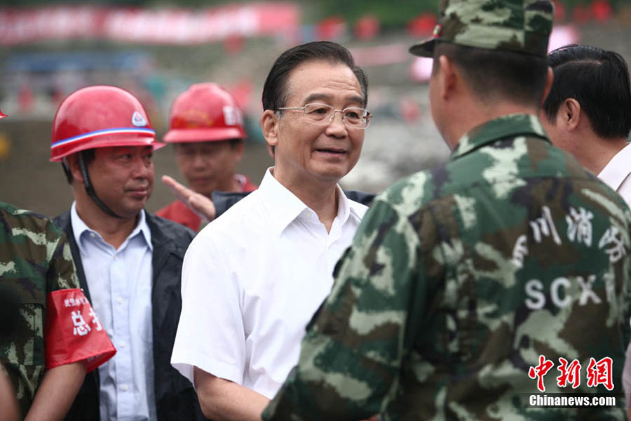 溫家寶抵達汶川映秀鎮慰問搶險救