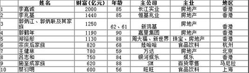 85歲的李兆基以財富1440億人民幣排名第二。李兆基以地產投資為主,后涉足股市,從“樓神”搖變“股神”。