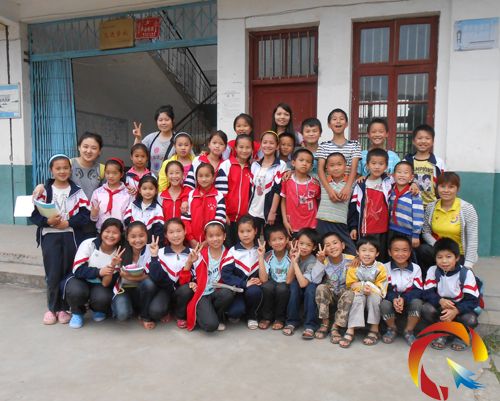 社工志愿者與留守兒童合影