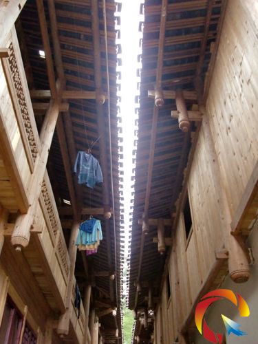 福建廈門永定客家土樓聞名于世,那里有奇特的“一線天”景觀。3月31日,筆者在從江縣岜扒村,也發(fā)現(xiàn)了類似的侗家民居“一線天”。
