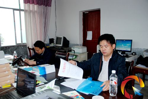 梁文國和丁邦堂督學(xué)在加鳩民族中學(xué)認真查閱資料