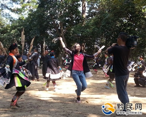 《文明密碼》欄目攝制組在拍攝岜沙民間舞