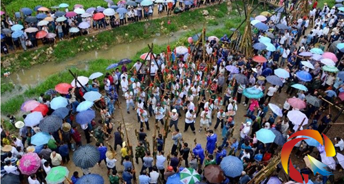 節(jié)日當(dāng)天,綿綿細雨絲毫阻擋不了節(jié)日氣氛。吸引了來自附近鄉(xiāng)鎮(zhèn)的蘆笙隊前來參加吹蘆笙比賽,路邊、房頂、山坡上都站滿了前來觀看的群眾和游客,可謂是人山人海、熱鬧非凡。