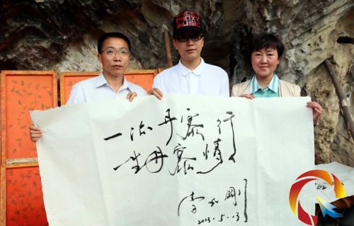 著名藝人李玉剛(中)與丹寨縣委副書記、縣長侯美傳(左),縣委常委、宣傳部部長彭瑤(右)合影
