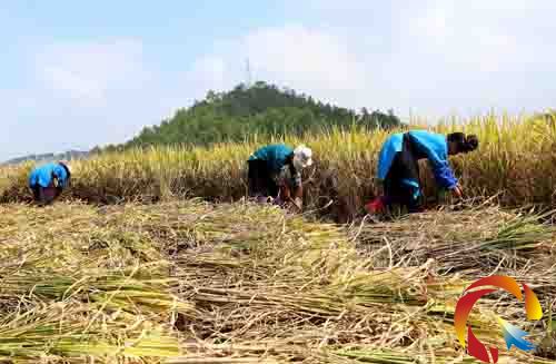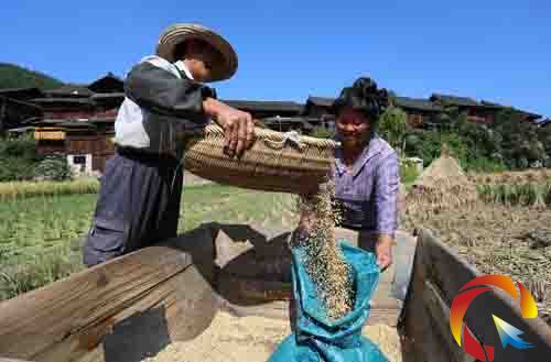 隨著晴好天氣的到來,貴州省丹寨縣的村民們正抓緊時間搶收因受“玉兔”影響而晚收割的近6萬多畝水稻,力爭做到顆粒歸倉,盡量減少損失。(黃曉海)