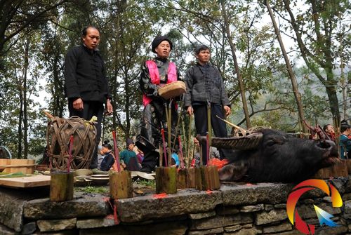 11月19日是貴州省丹寨縣揚武鎮楊頌村一年一度的苗族祭尤節,當日,苗族村民們身著盛裝歡聚一堂,舉行隆重的祭祀儀式,祭祀苗族先祖。并以跳蘆笙舞、唱苗歌的方式歡度這一古老的苗族節日。