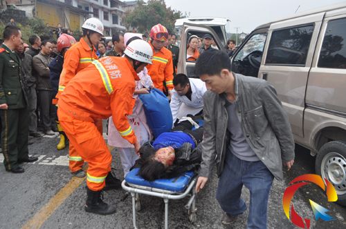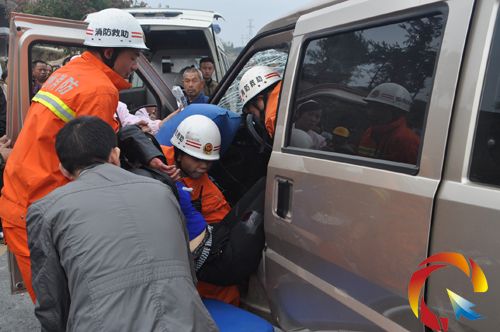 黃平縣消防大隊接到報警后,立即出動救援力量趕往現場實施救援。消防官兵在事故現場發現一輛中巴車車頭朝下側翻在公路邊一低洼處,車內被困人員已全部獲救,部分乘客滯留在公路邊上。面包車停靠在路邊,車頭嚴重變形,駕駛員當場死亡,副駕駛位置有一名女性乘客被困,其身體多處受傷。消防官兵利用救援工具破拆面包車車體,經過大約10分鐘的努力,成功將被困人員救出,并送上救護車送往醫院救治。