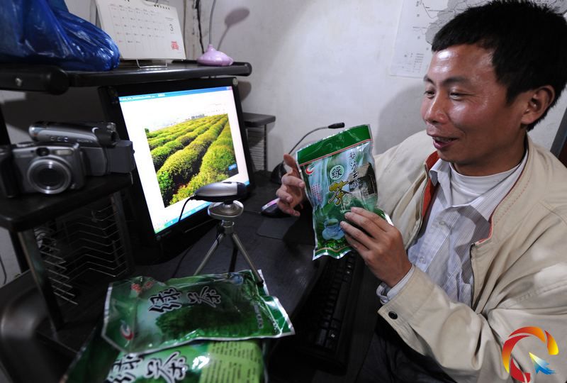戴向陽網上推介家鄉高山綠茶,成為電子商務行家。卓忠偉攝。