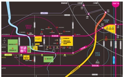 藍潤棠湖春天,位于空港生活核心區域,地塊東側緊接棠湖外國語中學,西側約300米為西南民院航空港校區,西南側約1.5公里為四川大學江安河校區。機場高速、大件路、川大路等主干道與成綿樂輕軌、規劃中的地鐵6號線形成便捷的交通網絡,藍潤棠湖春天位于交通網絡中心位置,徹底告別“擺設”生活。