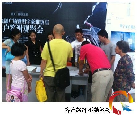 活動當天,前來觀影的客戶興致高漲,擠滿了整個影院大廳。同時影立方的其他觀影客人也對明宇集團產生了濃厚的興趣,其中一位來自中石油的先生,表示此前從未了解過明宇集團,在展架前經明宇工作人員介紹后,當即表示要和明宇集團簽訂全年酒店入住合作協議。
