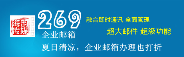 269 企業郵箱是國內最早開始研發、推廣、服務的專業郵件系統軟件技術提供商,于1996 年開始研發銷售產品。 269 企業郵箱具有全新的理念和突破性的功能,采用自主開發的郵件服務器,為 8000 萬用戶的電子郵件進行服務支持,為廣大用戶提供了高穩定性,高安全性,高可靠性的電信級電子郵箱服務。目前, 269 企業郵箱已經成為國內最大的專業收費郵箱技術服務提供商,并以其領先的產品,完善的服務,成為各行各業人所公認的最佳合作伙伴。 269 企業郵箱辦理熱線: 400-065-1866 聯系人路小姐。