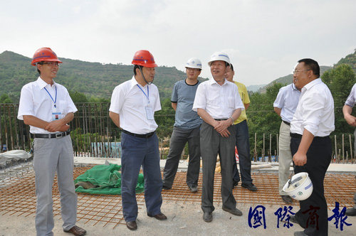 甘肅長(zhǎng)達(dá)公司董事長(zhǎng)李興民(右二)在葛萬(wàn)民(左二)陪同下視察成武項(xiàng)目