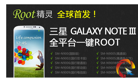 三星NOTE 3作為目前三星旗下的最新產(chǎn)品,在發(fā)布之際就備受關(guān)注,但由于其采用的安卓系統(tǒng)版本是最新的Android 4.3版本,很多用戶購買之后發(fā)現(xiàn)并不能進(jìn)行ROOT操作。最近發(fā)現(xiàn)了一款名為ROOT精靈的小巧軟件,可以解輕松ROOT三星NOTE 3各版本,包括國內(nèi)聯(lián)通、移動(dòng)以及電信的運(yùn)營商定制版本。