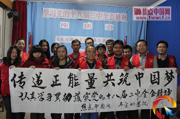 焦點中國網河北訊(佳林)11月22日,石家莊國際文化貿易交流協會在會議廳舉辦“學習貫徹落實黨的十八屆三中全會精神座談會”,座談會圍繞“傳遞正能量,共筑中國夢”為主題展開。石家莊國際文化貿易交流協會副會長袁艷光主持了本次座談會。