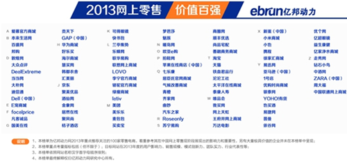 2013年網上零售價值百強