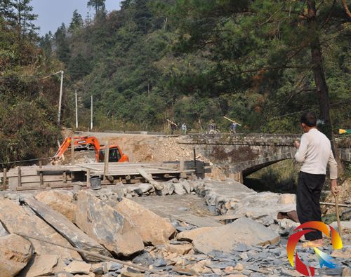該橫橋建造于七十年代初期,橋的另一頭緊挨著坡腳里坎,彎道非常急,常走這條道上的駕駛員倒是習慣了的。但針對各省、市縣的駕駛員初來乍到特別小心過此急彎,一不小心會“栽”到河里。為了此處的交通事故安全降底減少程度,鄉(xiāng)政府督促安監(jiān)辦人員常用醒目標語提示過往車輛減速行駛通過該橋,注意行車安全。近這兩年前,該橋發(fā)生過多起死亡事故及交通不良安全隱患并造成各種車輛及人員受傷;該縣某單位一皮卡車就因這“橋”頭彎急造成2死2傷。今年縣委縣政府督促縣公路局將“危險橫橋” 改建變成“斜橋” 方式進行施工,目前,需總投資100多萬元的“斜橋”正在抓緊施工中。(粟周銀 攝影報道)