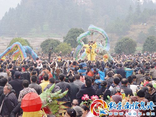 2月24(元宵節),貴州錦屏隆里古城一片歡騰,600余年的古風遺韻原生態花臉龍舞龍狂歡讓八方游客享受了文化盛宴,吸引了上萬中外游客前來觀看和眾多的專家學者、媒體新聞前來采風,從畫花臉、祭龍舉行游龍活動到大型舞龍表演、膩粑龍表演、漢戲表演、蚌殼表演中,吸引了觀眾的眼球。特別是大型舞龍表演、膩粑龍狂歡把活動推向了高潮,讓八方游客再一次體味到了隆里古城花臉龍傳統民俗文化的韻味,深受中外游客的喜愛。