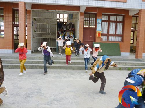 鎮屬6所小學的800多名師生參加演練,通過演練,師生應對突發事件、自然災害的反應能力、自救逃生能力得到很大提高。圖為銅鼓鎮花橋小學消防演練現場,銅鼓鎮銅鼓小學避震減災演練現場。(羅錦云)