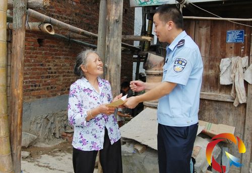 現年64歲的王有信家有10個人口,因有兩個兒子與兒媳雙雙外出打工,家中只有老兩口與4個年幼需要時序照看的孫子,民警前去看望的同時還向他們送去了慰問金。王有信深情地說“你們這些民警真好,不但來為我們抗旱,還上門來看望我們為我們送來慰問金,真是大旱無情警民有愛啊!”