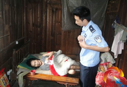 河口鄉韶靄村74歲的林木英老婆婆因患腦益血癱瘓在床已兩年多了,其丈夫王學師一邊照顧老伴,一邊還要種田種地維持生活,家庭十分困難,連平時為林木英老婆婆洗衣服、洗床單的洗衣粉和肥皂都沒有了。在烈日火辣辣的烤著大山,樹上的知了叫得異常熱鬧的7月19日,河口派出所民警專門買來的洗衣服、肥皂和糖果,背上背篼步行兩個多小時的山,將物品送到林木英老婆婆的床邊。林木英老婆婆見到民警后,掙扎著叫人把自己扶起來,伸出顫抖的手拉著民警含著眼淚,用不太清楚的聲音說:“娃…謝…謝你們了!”臨行前所長楊清高回望了一下林木英老婆婆簡陋的家,從自己的身上掏出200元錢遞到了婆婆的手上。并含著淚對身邊民警說:“以后我們只要來這個村,都來看一下這位老人。”