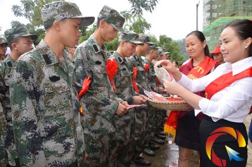 錦屏縣人武部開展夏秋季征兵工作以來,全縣上站體檢應征青年208人,其中大中專生應征青年91人,體檢合格93人,政審合格61人。經過縣征兵工作領導小組集體審定,全縣共有50名應征青年被批準應征入伍,其中高中以上文化應征青年35人,占應征總數的70%,高學歷應征青年創歷年新高。圖為9月4日在歡送新兵入伍大會上,該縣婦聯為新戰士贈送鞋墊的情景,深表軍民魚水情。(譚洪勇 楊正亮 攝)