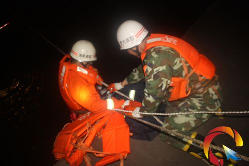 00時45分,一名手臂力量較大的消防員經兩次使勁扔甩繩索才在離被困車輛近10米的河道間架設了一條繩索,繩索一頭由被困人員固定在被困車輛,另一頭固定在河道堤壩旁的貨車上。隨后,一名經驗豐富的戰士帶上已準備好的繩索、救生衣、掛鉤以及導向繩橫渡到被困車輛上展開救援。01時27分,經過全體消防官兵的協力努力,第一名被困人員通過架設的生命繩索被成功營救、第二名被困人員成功救援,而后,深入到被困車輛上的消防戰士安全返回堤壩。