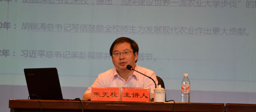 中國(guó)農(nóng)業(yè)大學(xué)教授張天柱作了現(xiàn)代農(nóng)業(yè)園區(qū)建設(shè)的專題輔導(dǎo),張教授首先從“什么是現(xiàn)代農(nóng)業(yè)”、“為什么要發(fā)展現(xiàn)代農(nóng)業(yè)”入手,層層講授了現(xiàn)代農(nóng)業(yè)的基本概念和范疇、現(xiàn)代農(nóng)業(yè)的要素、現(xiàn)代農(nóng)業(yè)的發(fā)展趨勢(shì)及中國(guó)發(fā)展現(xiàn)代農(nóng)業(yè)的必要性。進(jìn)而張教授又深入到了如何發(fā)展現(xiàn)代農(nóng)業(yè)的問題,從技術(shù)層面探討了現(xiàn)代農(nóng)業(yè)的發(fā)展模式和現(xiàn)代農(nóng)業(yè)園區(qū)建設(shè)的方向。