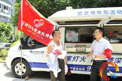 當天上午,在豐球綠都小區(qū)內一臺印有“凱里供電局流動營業(yè)廳”的車輛和一面印有“苗鄉(xiāng)侗寨電力服務隊”的旗子格外顯眼,不時,現(xiàn)場集結了許多群眾,有的前來繳電費、有的來咨詢電價政策、有的了解用電安全知識等等,現(xiàn)場的服務隊伍員們忙而不亂,有序開展電力服務隊進社區(qū)活動。