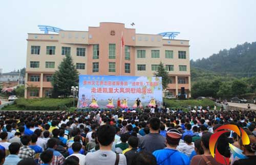 省歌舞劇院舞蹈團表演的舞蹈《花開中華大家園》拉開了演出帷幕。來自我省各領域的老中青藝術家紛紛登臺獻藝,昂揚的歌聲、激情的舞蹈,吸引了爐碧工業園區的建設者和大風洞周邊群眾前來觀看。穿著民族服飾的苗族同胞匯聚在政府廣場。在近90分鐘演出中,他們時而歡笑,時而鼓掌。群眾的激情讓藝術家們深受感觸,他們說,群眾需要就是自己走進基層的真正動力。