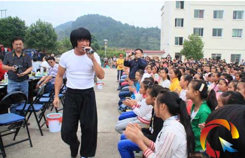 來自黔東南籍的演員雷艷和凱里大風洞的武打演員王飛鴻的演出把活動推向高潮。王飛鴻帶有苗語的歌聲加上在舞臺上的武術激情表演,引來現場掌聲雷動,歡聲如潮。