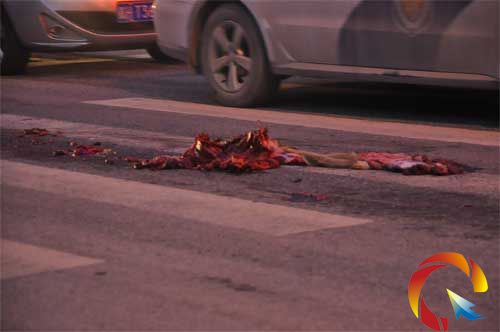 在離事故地點不遠處記者還看見路上有一條類似狗一樣的動物被壓死,因動物被壓爛而分辨不清到底是狗還是其它動物。