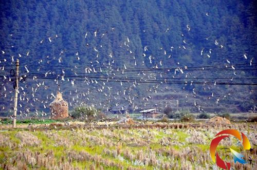敖市鎮鎮林業部門的工作人員說,近段時間來,經常有大量的鳥雀到該鎮的田壩里覓食,這種鳥在當地已經絕跡10多年了。
