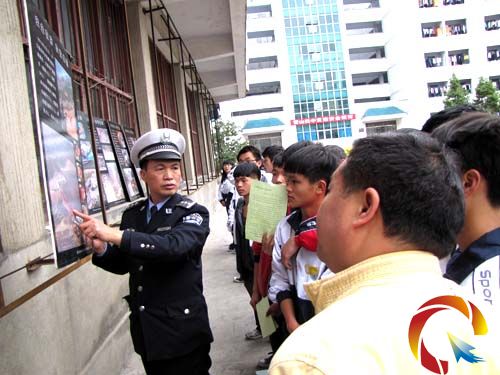 隨后,交警官兵引導全校師生觀看了精心制作的交通事故展覽圖片。在30塊彩色展板中,有15板是緊密貼近中學生日常生活的摩托車事故圖片。車輪下模糊的身體、山谷中破碎的骨肉、公路邊血腥的尸體、以及親人們撕心裂肺悲痛欲絕的場景,觸目驚心,攝人心魄,警示深刻。