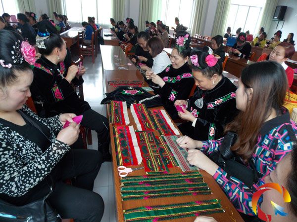 培訓(xùn)期間邀請(qǐng)貴州省晟世錦繡公司總經(jīng)理余英及付繪熙、仁飛等老師,她們分別傳授了民族文化(民族自豪感培養(yǎng))、優(yōu)良生活習(xí)慣(保護(hù)手,洗手等衛(wèi)生習(xí)慣)、生產(chǎn)習(xí)慣培養(yǎng)(時(shí)間觀念、生產(chǎn)標(biāo)準(zhǔn)、技藝提高與融合)、疏念疏導(dǎo)(提升婦女社會(huì)地位、激發(fā)民族自豪感、正確的市場概念)、美麗教育(多樣民族傳統(tǒng)文化、現(xiàn)代審美)、素質(zhì)教育(禮貌、文明的生活方式、責(zé)任感、團(tuán)隊(duì)精神)等內(nèi)容,通過本次培訓(xùn)學(xué)員們受益匪淺。圖為丹江鎮(zhèn)苗族婦女刺繡的場面 。(張希才 蘭吉琴攝影報(bào)道)