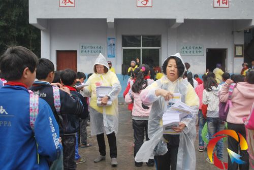 香港“育苗之友”善良的叔叔阿姨、爺爺奶奶們為桃江小學的220個孩子帶來了衣物、棉被、書籍、文具、糖果和生活用品,所有物品均現場發放給孩子們,切實解決了孩子們的生活保暖及學習用品欠缺問題。雖然當天陰雨綿綿,雨滴打在孩子們冰冷的腳指頭上,可是,香港遠客們的愛心和善舉卻讓他們心靈倍感溫暖,臉上掛滿了喜悅的笑容,嘴上不停的說著“謝謝!謝謝!”。