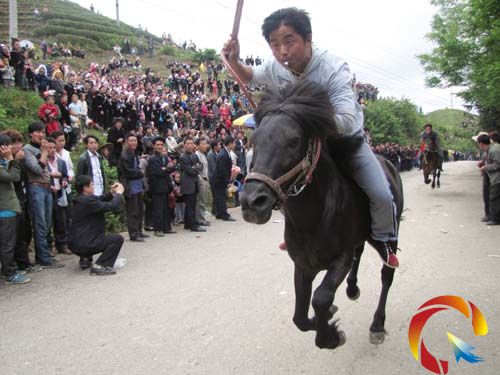 最吸引人群、最激動人心、最叫男女老少期待的是跑馬賽。賽馬是三角田“爬坡節”的特色活動項目,雷山“爬坡節”唯有三角田地區組織賽馬。今年“爬坡節”還吸引來了凱里、丹寨、麻江、黔南州都勻、三都等周圍縣市的賽手及賽馬前來參賽。5月5日,經過一天的反復比賽,雷山縣郎德鎮南猛村的賽手楊東林獲得第一名,望豐鄉排肖村的余紹雄獲第二名,來自丹寨縣火燒寨的楊正光榮獲第三名。
