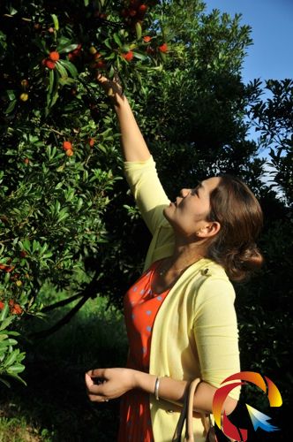 6月17日,雷山縣望豐鄉一年一度的楊梅節開幕,一名游客在采摘楊梅。