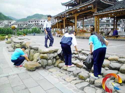 針對7月12日至19日雷山縣百村十萬群眾歡度苗族“吃新節”,縣城商賈云集流動多增加導致垃圾增加的現象,“苗鄉知青慈愛團”組織參加動員會的大學生和中學生青年志愿者120余人,分三組沿三個方向灑掃縣城街道、擦洗縣城華燈電桿橋梁護欄、清理縣城野廣告、夾揀丹江河及社區街巷白色垃圾,受到縣城居民和干部群眾的熱烈好評。