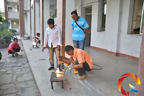 電焊班學(xué)員在進(jìn)行電焊操作