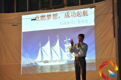 余俊宏先生以自身成長經歷和人生打拼過程,兼以生動事例,激昂地告訴同學們:“人因夢想而偉大”、“要靠頭腦來謀生”、“以樂觀態度對未來”,并向高中生們介紹了自己學生時代有效學習、成功高考的學習方法。余俊宏先生激情飽滿,事例生動,語氣幽默,富于啟發,他的演說受到師生的熱烈歡迎。