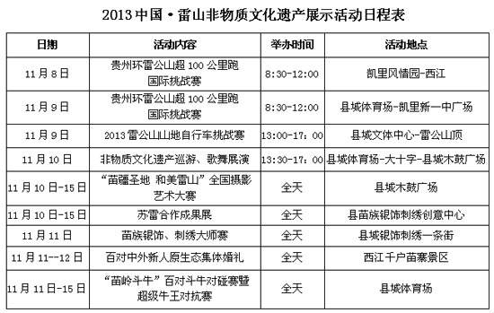 從雷山縣苗學會及百村寨老節日聯盟會獲悉,雷山縣一年一度的苗年將在2013年11月8日至15在雷山縣城及全縣100多個苗寨舉行。