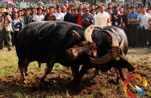 特別一提的是,11日至15日的全國超級百對牛王對抗賽不容錯過。斗牛5天期間,斗牛場人山人海,每天有萬余人爭相購票觀看,常有一票難求之事發生。為何有這么多人競相觀看?答案,苗嶺斗牛是那份原始和野性,讓到貴州旅游的世界各地的都市人感受到別樣的瘋狂和刺激。雷山苗族斗牛有千年歷史。然而與西方斗牛不同,苗族人以牛相斗并不是戲牛取樂,而是以斗牛的方式選出“圖騰”崇拜,用以來展示苗家人崇敬的力量和勇敢。斗敗的牛則命運比較悲慘,有的被再次精心飼養,以圖來年再戰崢嶸,否則,就會被其他村寨的村民羞辱和諷刺,一頭好的斗牛往往被視為全村寨的財富。