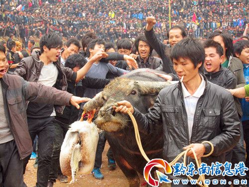 在從江縣丙妹鎮(zhèn)、下江鎮(zhèn)、停洞鎮(zhèn)、東朗鄉(xiāng)、雍里鄉(xiāng)、高增鄉(xiāng)、谷坪鄉(xiāng)、宰便鎮(zhèn)等鄉(xiāng)鎮(zhèn)苗族、侗族群眾都有斗牛習(xí)俗,當(dāng)?shù)孛耖g斗牛都不設(shè)獎(jiǎng)項(xiàng)及獎(jiǎng)金,勝牛主人興奮,敗牛主人也不生氣,用他們的話說(shuō)純屬民間娛樂(lè)。