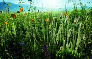 初 夏到禾木,不經意中就會和晨霧相逢在起伏的草地上、散落的村落中,以及綠意融融的河谷里,褲腳和鞋子一會兒就被打濕。晨霧似乎是被輕風融化在草間和花叢 中,結起的晶瑩露珠,滋潤著細密的小草和散落的小花,還有在灌木叢頂梢連成一片的紅色野果。放晴后,白云在山林中翻涌,一群蒼鷹在升騰的地氣中升降、滑 翔,空氣依然濕潤、芬芳,草地上的馬兒悠閑地抬起頭看看天,甩甩尾巴又低下頭去,絲毫不理會遠處拍照的嘈雜人群。