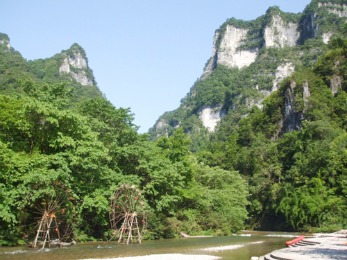 我們?cè)谏寄竞拥膽驯Ю镄凶�。河面時(shí)寬時(shí)窄,河水悠悠流淌,水面清澈見底,砂石歷歷可數(shù)。舉目漫山遍野,兩岸懸崖絕壁,山形變幻莫測(cè),或如仙人指路,或似大佛現(xiàn)身,或有飛來神像,景色美侖美奐。不知是因了這杉木河的水,山才變得那樣的靈氣?還是因了這山的靈氣,杉木河的水才那樣的晶瑩?