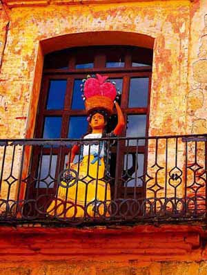 瓦哈卡的美不僅僅停留在色彩上,如果把一座城比喻成一個少女的話,那么瓦哈卡絕對是一個熱烈、單純,但又有風情的混血兒,這座城,凸顯著土著風情,亦有強烈的殖民文化特征,交互混雜,卻和諧共生。人們講不同的語言,穿不同風格的民族服裝,有著不同的膚色和不同的氣質,這里,無論街角還是窗棱,處處都散發著一種草根的藝術氣息。而我的鏡頭就像是忙不過來的眼睛,不停地東張西望,忙不迭地把這奇幻的景象收入囊中,生怕錯過什么。在這里,相機中的“鮮艷”模式完全派不上用場,即便每張直出,也艷麗得完全不用后期,如果把它們拼接在一起,簡直就是一部生動地旅游宣傳片:紅褐色的墻壁邊有陶醉地拉著手風琴的賣藝人;臺階邊坐著的老人面前的推車里有一盆盆與墻壁一樣艷麗的花朵,襯著他們那一副與世無爭的樣子。